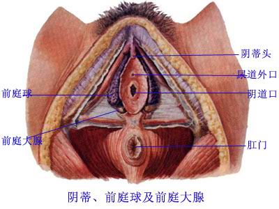 位于前部,男性有尿道通过,女性有尿道和阴道通过。