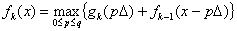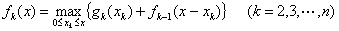 表示以数量x分配于前k种生产所得到的最大总收入,利用最优化原则,得