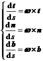 把活动标架看作一个刚体,就是当M沿曲线移动时,M的活动标架好象刚体那样绕M转动.这时把s看作时间,则根据运动学的原理可以得出活动标架的瞬时转动速度的表达式为
