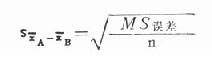 2.计算 sxA-xB本例各处理组的样本含量n1相等,按式(19,14)计算两均数差的标准误。已知MS组内=5.017,n=8