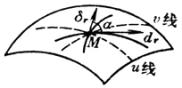 FG为曲面的第一基本量(在点M取值)。坐标线u=常数和v=常数的交角决定于