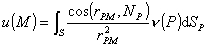式中表示矢量 NP表示S在点P的外法线矢量,dSP表示点P的面积元素.