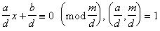 有解的充分必要条件是:,若有解则共有(a,m)个互不同余的解,modm.解法如下: