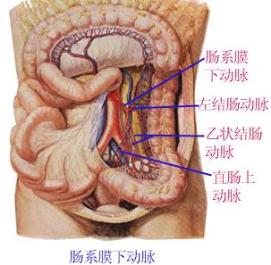 3腰椎平面由腹主动脉发出,行向左下。 3rd lumbar plane issued by the abdominal aorta, the next line to the left. 分支布于降结肠、乙状结肠、直肠上部等。 Branches distributed in the descending colon, sigmoid colon, rectum and other upper.