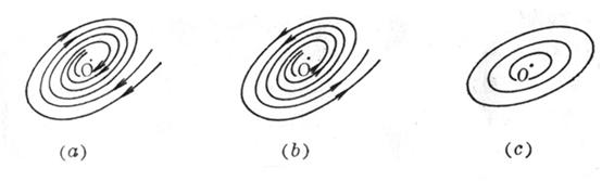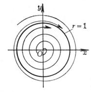 When k= 0 , it is a circle x 2 + y 2 =1 ; when k=c 2 ( c> 0) , it is a spiral, when t - , it tends to the origin, and when t , it is approached from the inner spiral Circumference x 2 + y 2 =1 ; when k= ( c> 0) , the orbit is a curve, when t log c +0 , it tends to infinity, and when t , it circles from the outside to approximate the circumference x 2 + y 2 =1.