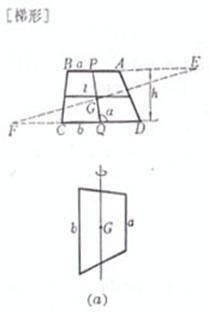 area The center of gravity G is at the intersection of the diagonals area center of gravity Moment of inertia The axis of rotation passes through the center of gravity and is parallel to the upper and lower bottoms ( Figure ( a )) When a =b ( parallelogram ) area