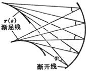 The limit position of the intersection of two adjacent planes in the ridge plane family is called the feature line of the family, and the envelope of the feature line (if it exists) is called the ridge line of the family, which divides the envelope surface into two leaves, with the ridge Lines as "sharp bobbins" of surfaces (figure ( d ) )